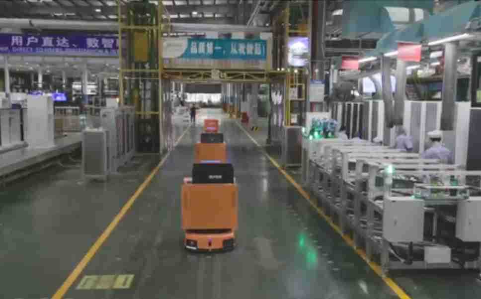 为车载冰箱物流配送打造的智能解决方案,,,,包含产中物流通过潜伏举升AMR搬运至线边,,,,产后成品物流智能仓储,,流程包含产中物流智能齐套入库,,,线边安灯叫料AMR智能配送至线边,,,成品入库、、、、出库,,,,通过无人堆高车机器人,,,,智能仓储管理替代人工作业管理,,,实现更高存储、、、更高效率、、、、更具柔性化的解决方案。。。